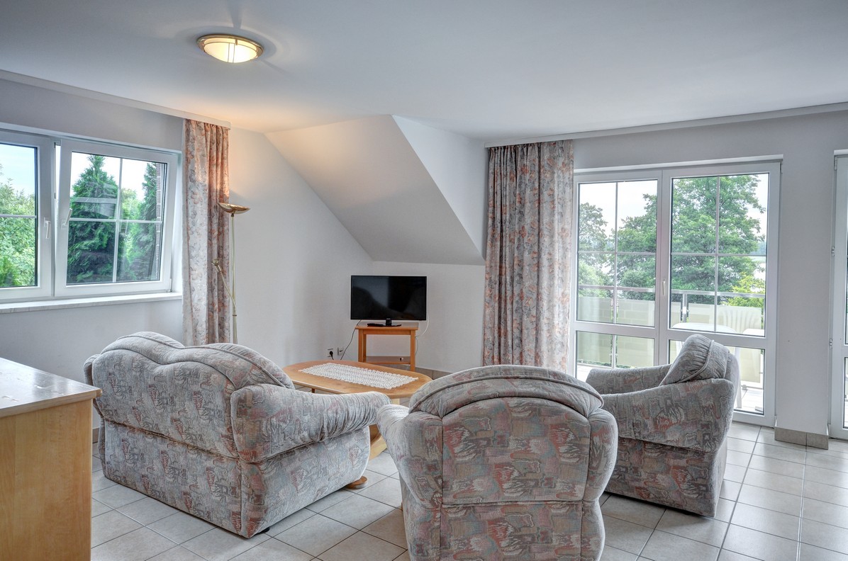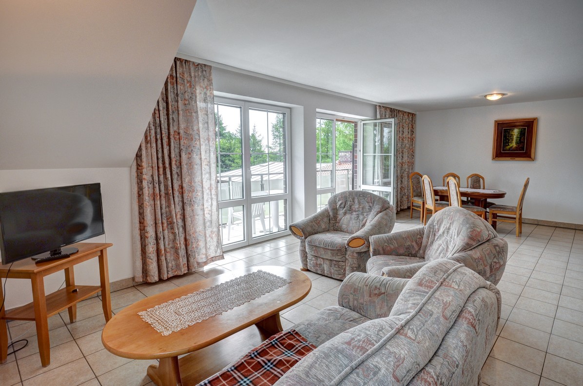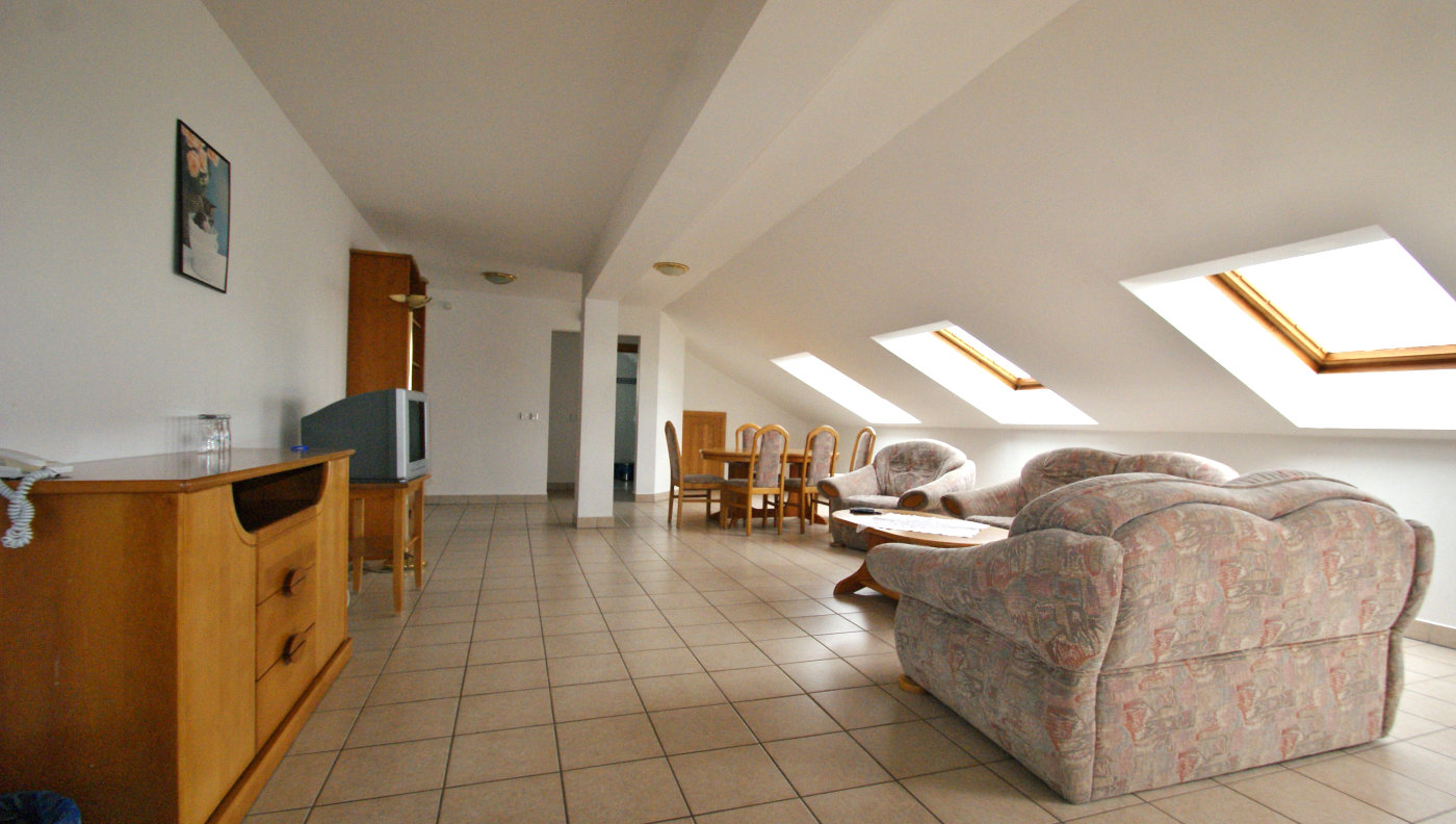 - su sulankstomu stalu, terasa (vaizdas į ežerą), 6 kėdės, spinta, šifonas, 2 ištraukiamos lovos, 2 foteliai, sofa, palydovinė televizija, telefonas, seifas, šaldytuvas